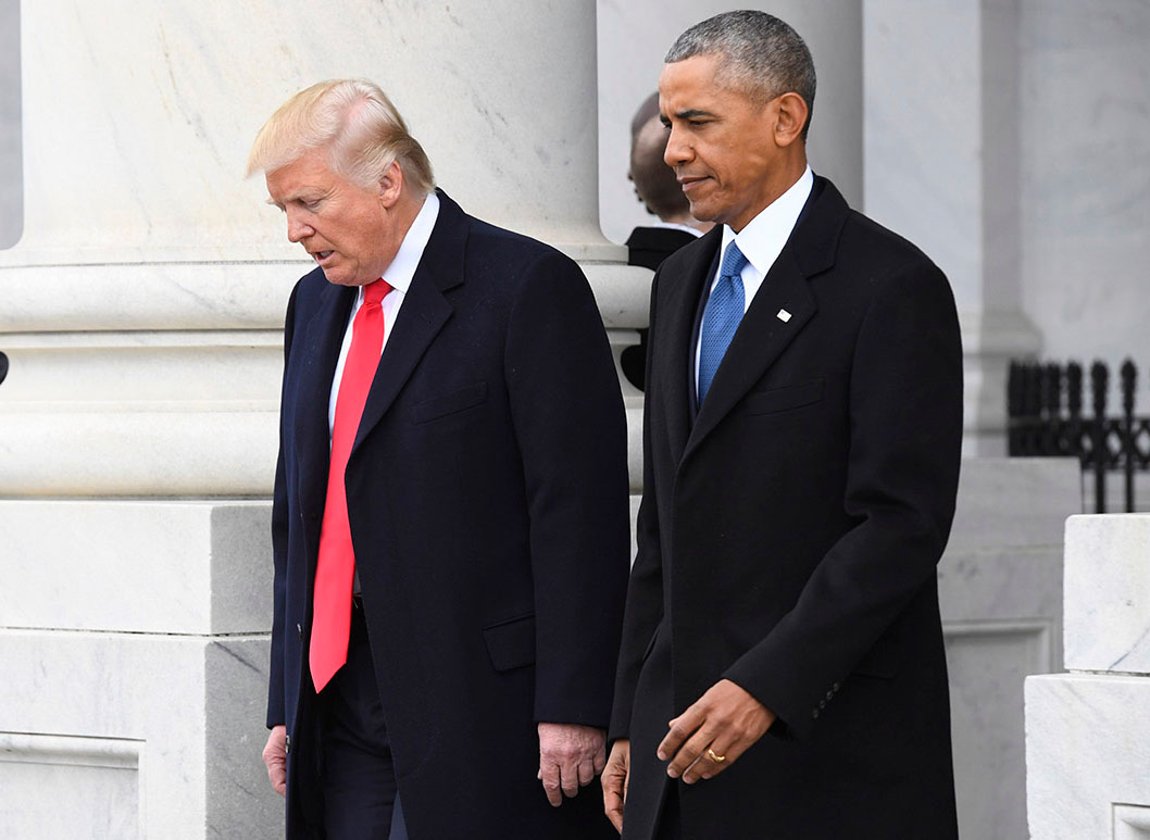 President Donald Trump took aim at Barack Obama during his speech at Kentucky, joking about the former president’s walk down the stairs and calling it “unpresidential.”